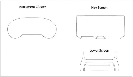 High-Definition Screen Film is always used for clarity with clusters. Anti-Glare Film will be an available option for some infotainment display screens.