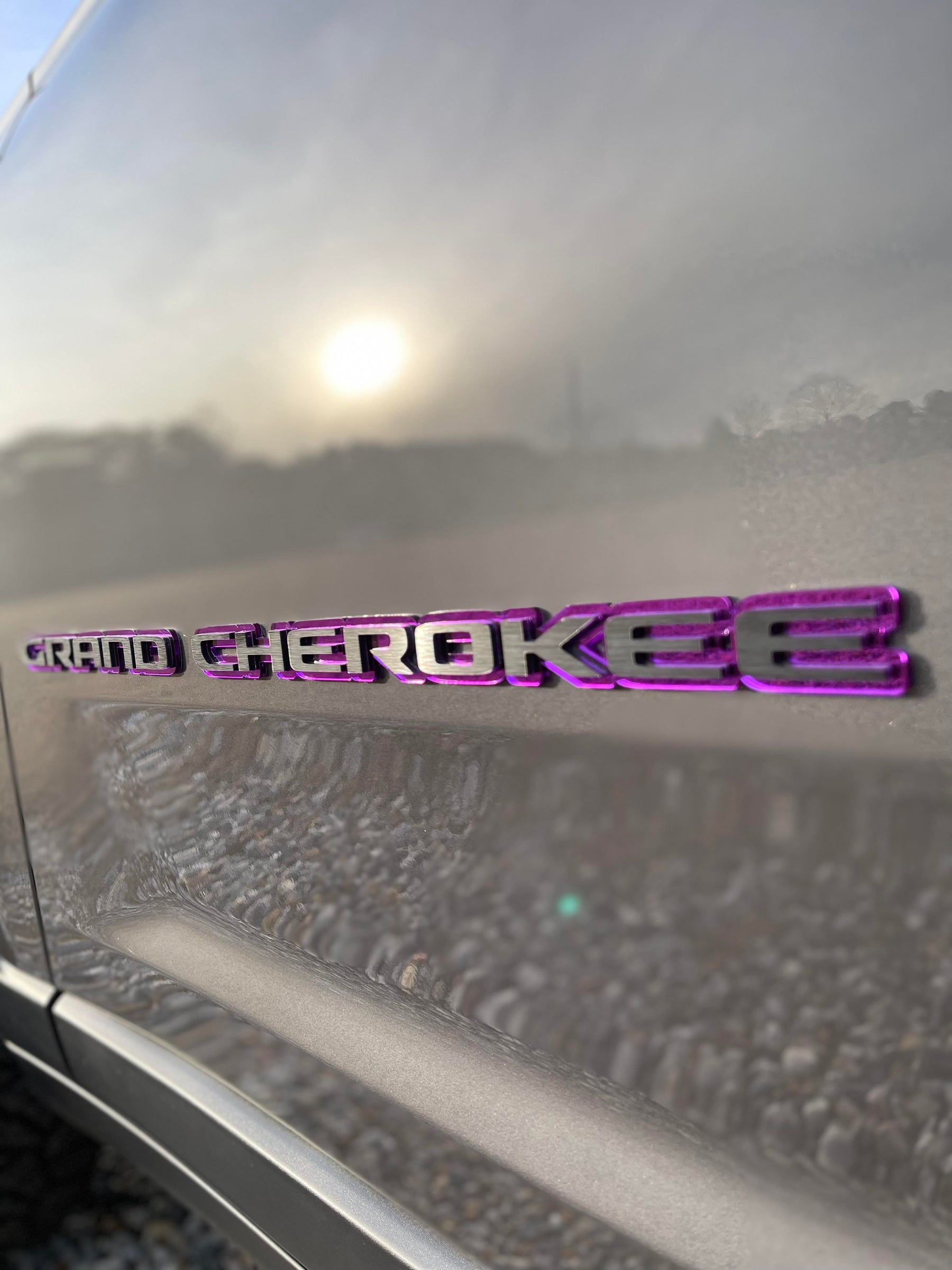 These emblems are custom made in our shop, from 1/8" cast acrylic, and are laser cut. Final letters will end up around 1/4" thick. They are designed to replace OEM Door Emblems on a WL/WK2 2014+ Grand Cherokee. These are 23" Wide by 1" Tall