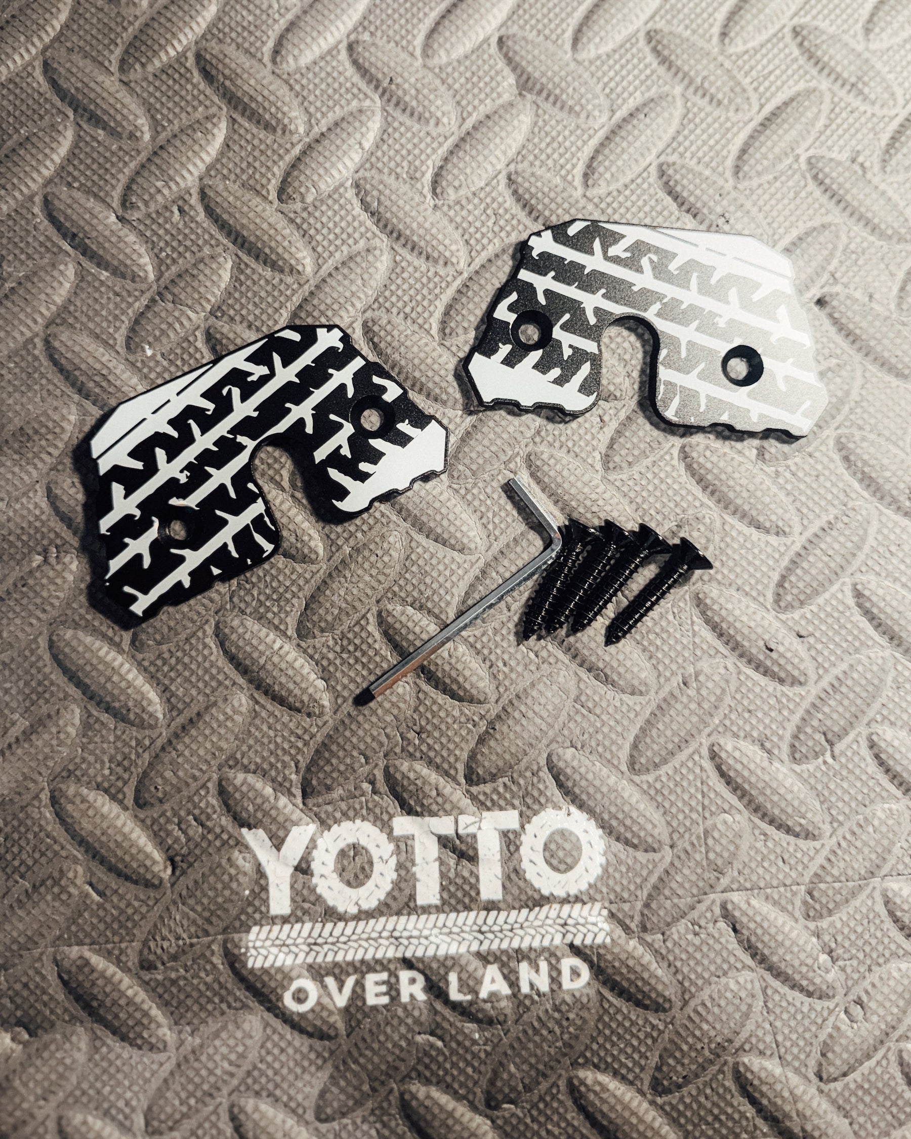 That’s where our brackets come in. Crafted from durable laser-cut steel and stamped with the Yotto Overland signature off-road tire mark logo, these brackets are built to save your date.