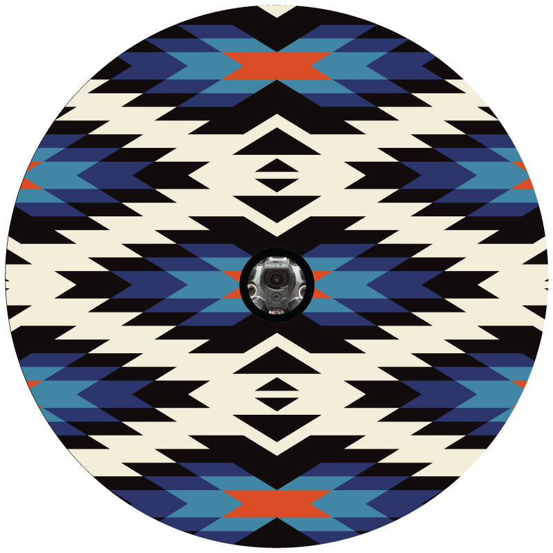 This Aztec serape inspired geometric pattern spare tire cover is made of high-quality vinyl that will protect your spare tire from the elements and create a stylish statement
