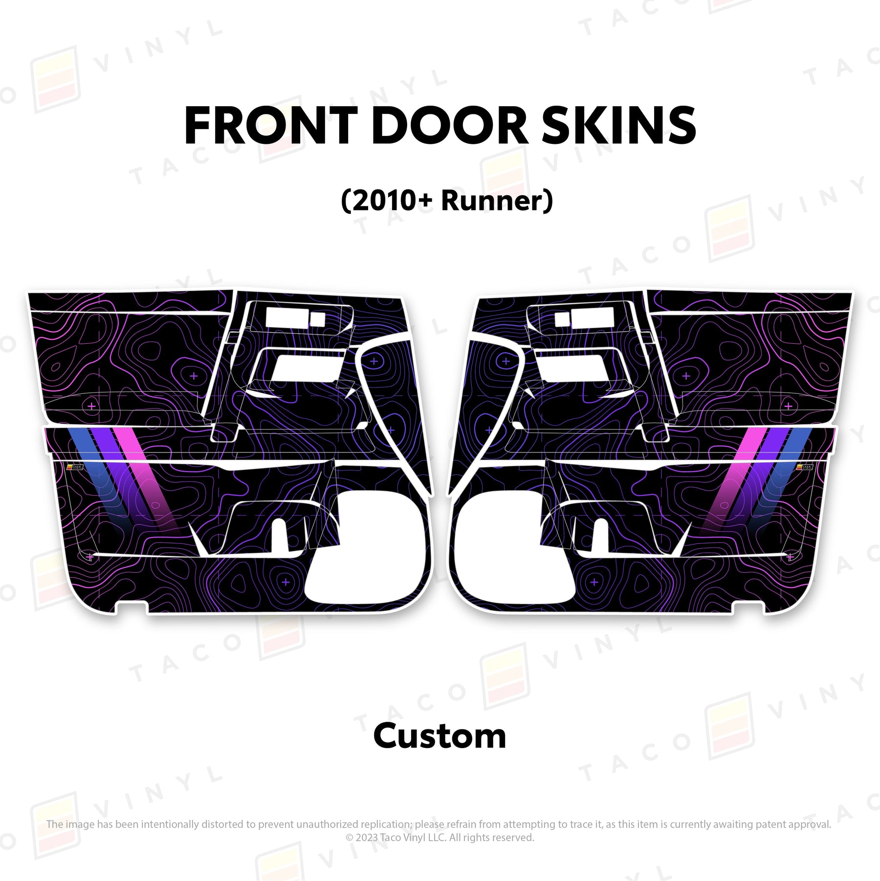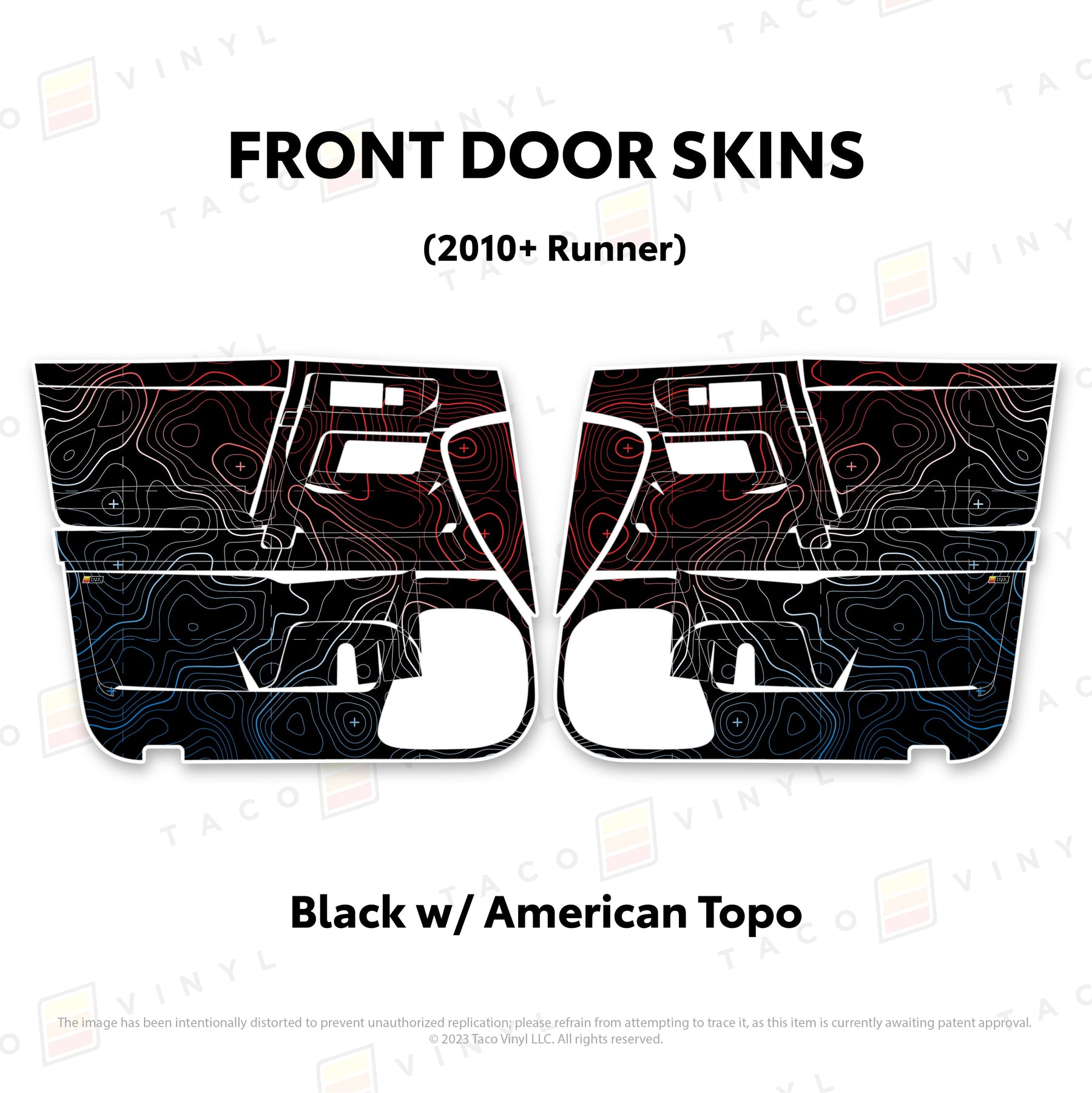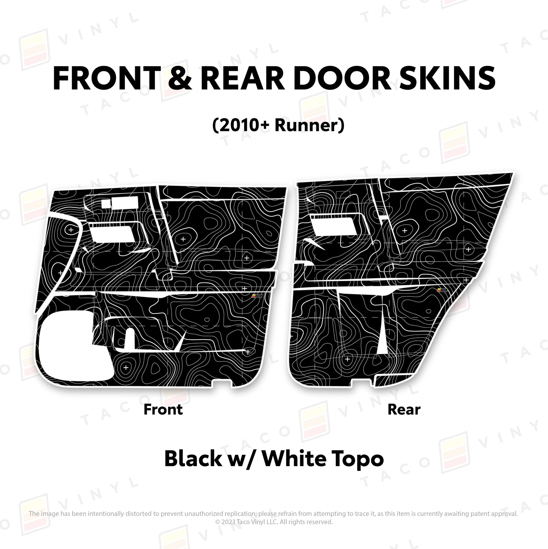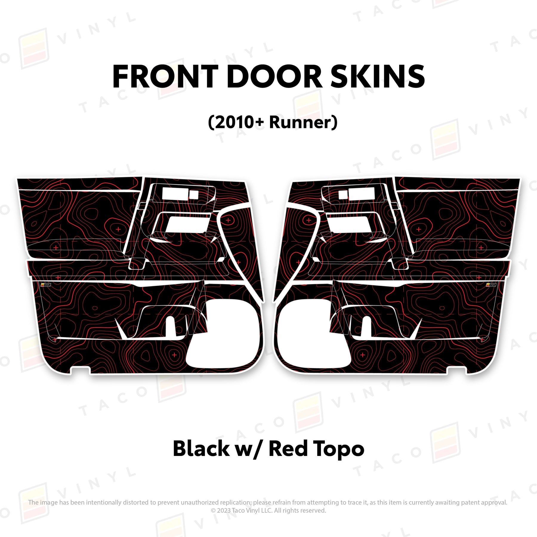 Welcome the worlds first door skins for your 5th gen 4Runner. Our door skins are made of the best and thickest material to get the job done. We made these at first to protect against door wear and tear from your boots, tools, pets and recreational activities then discovered that they are also aesthetically appealing. Whether you plan to keep your truck forever or have it on lease, our door skins will keep the door panel in great condition while also adding a cool design if you choose. Plus, the 4Runner design provides 20% more coverage than the Tacoma.