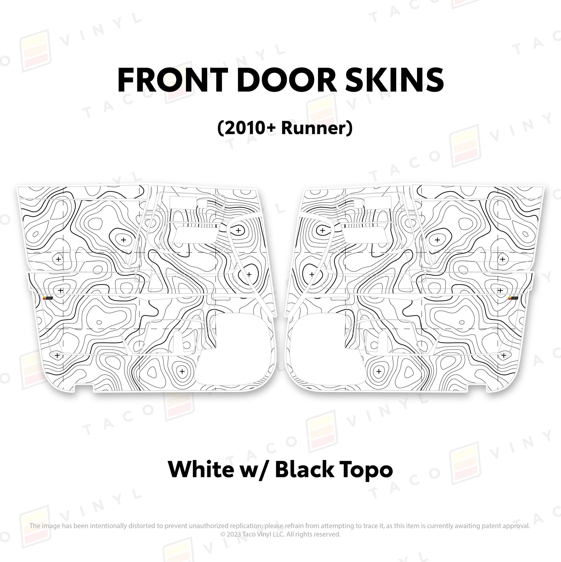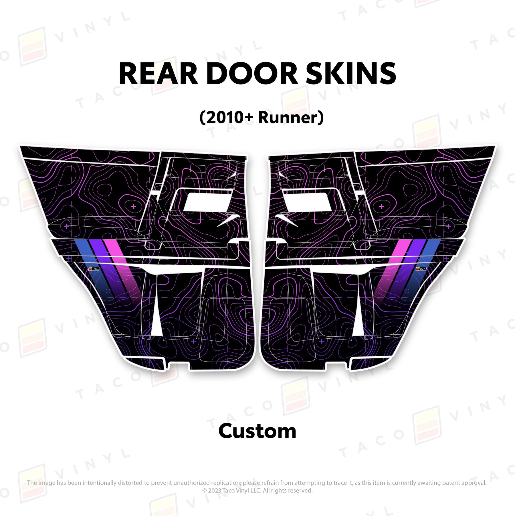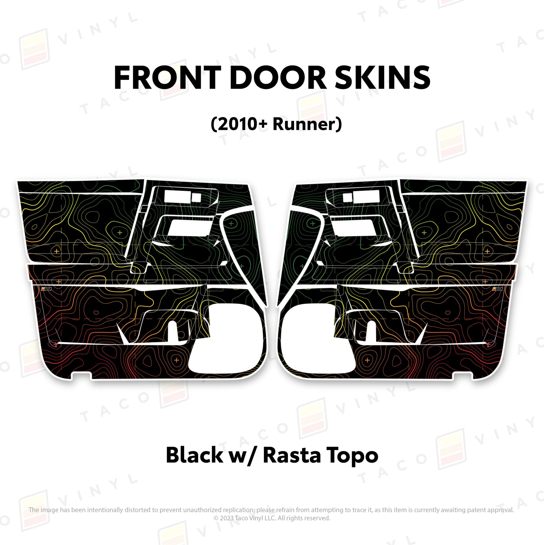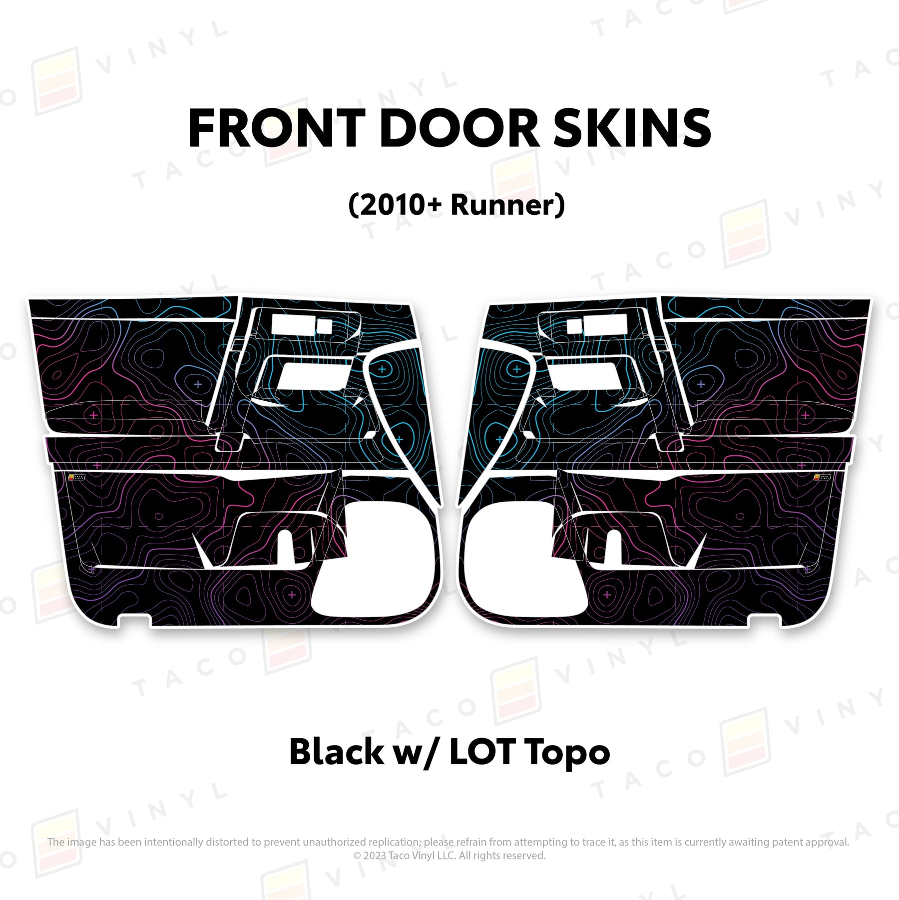 Welcome the worlds first door skins for your 5th gen 4Runner. Our door skins are made of the best and thickest material to get the job done. We made these at first to protect against door wear and tear from your boots, tools, pets and recreational activities then discovered that they are also aesthetically appealing. Whether you plan to keep your truck forever or have it on lease, our door skins will keep the door panel in great condition while also adding a cool design if you choose. Plus, the 4Runner design provides 20% more coverage than the Tacoma.