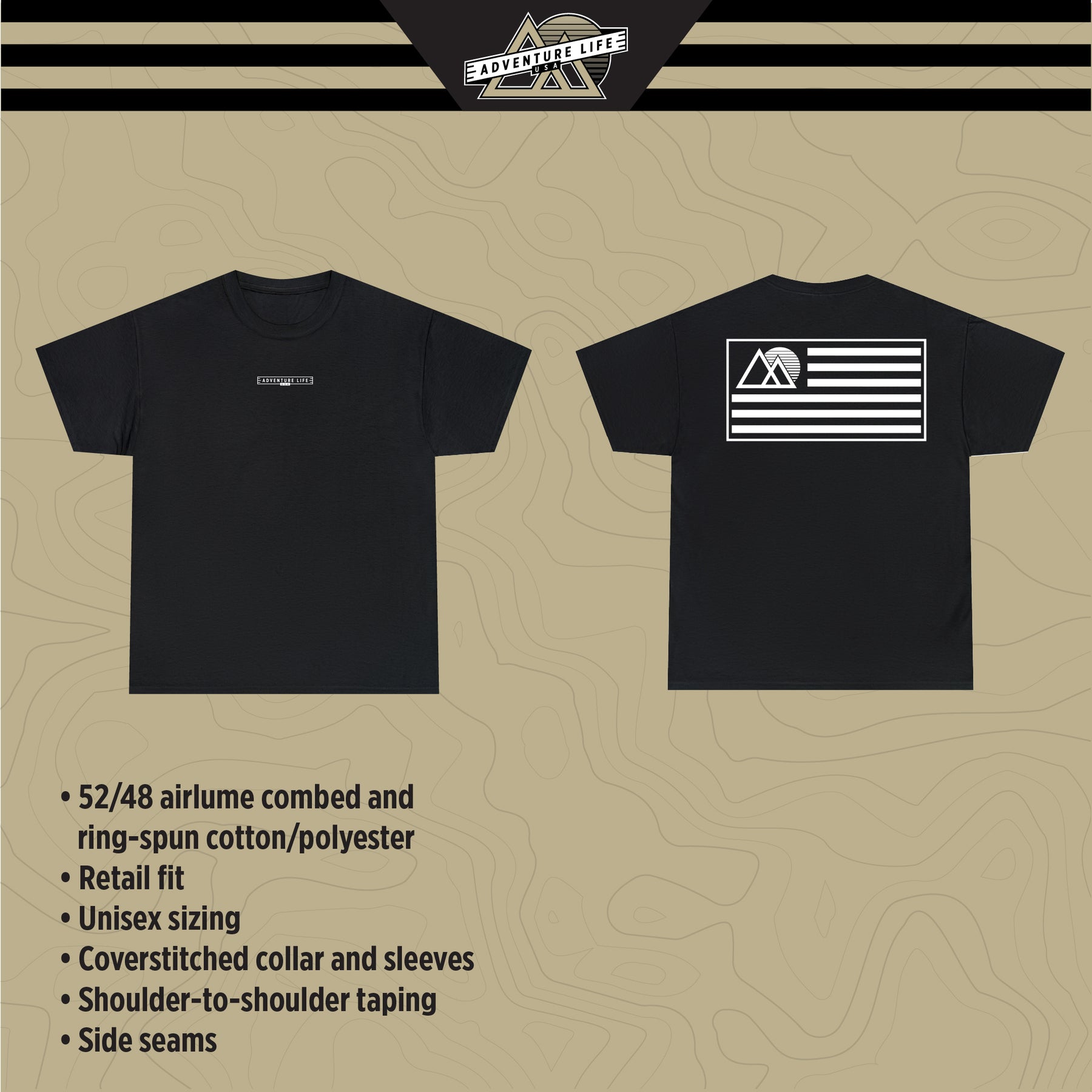 It's not just a shirt; it's a declaration of your love for adventure and your pride in the USA! Join the Adventure Life community and let your inner explorer shine. Get ready for unforgettable experiences, all while rocking your Adventure Life USA Flag Back Graphic Tee.