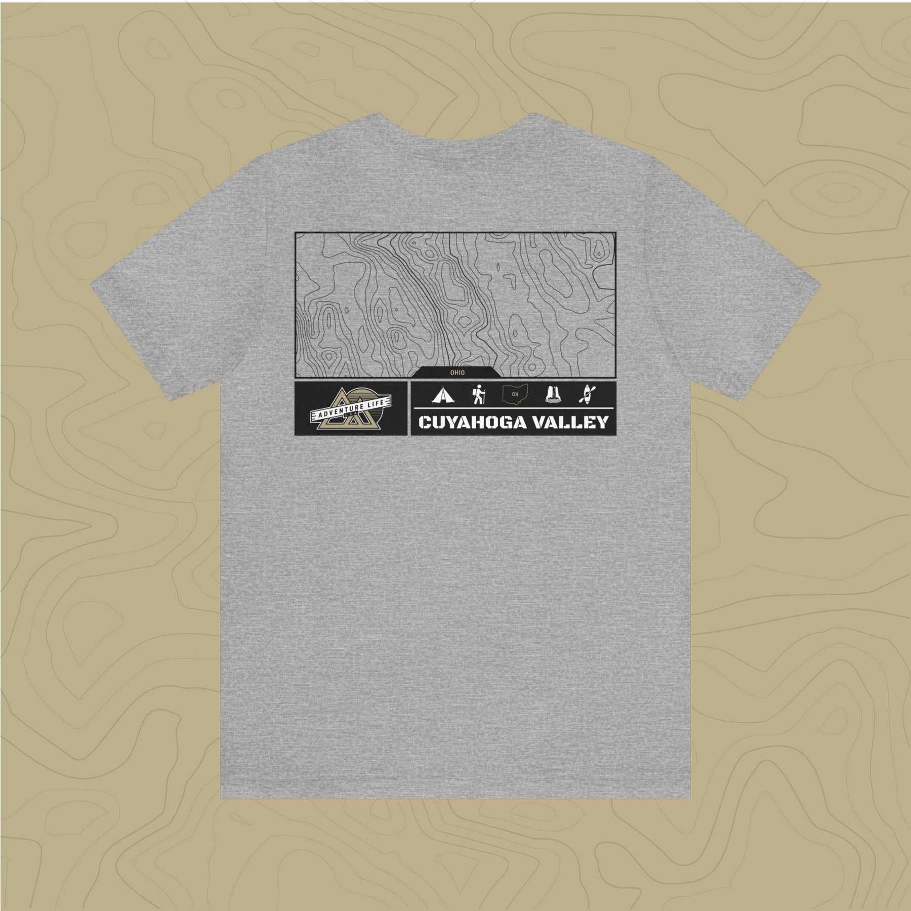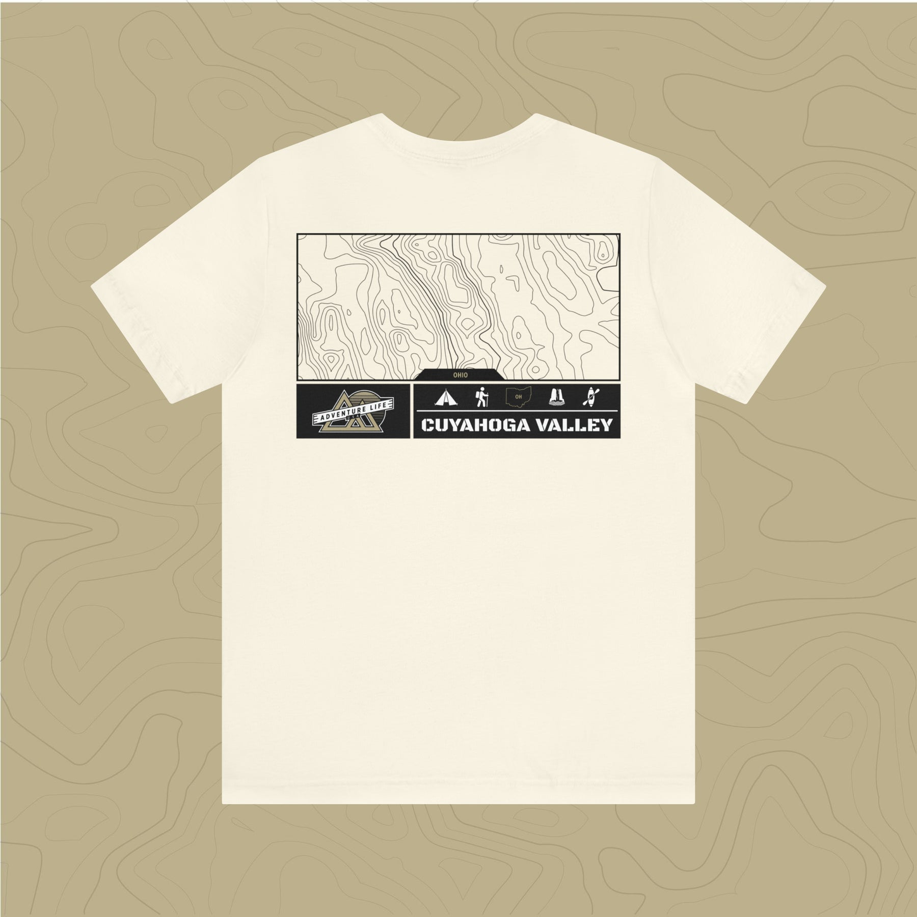 Embrace the adventure of Cuyahoga Valley National Park with our topographic map tee, a tribute to nature's beauty.