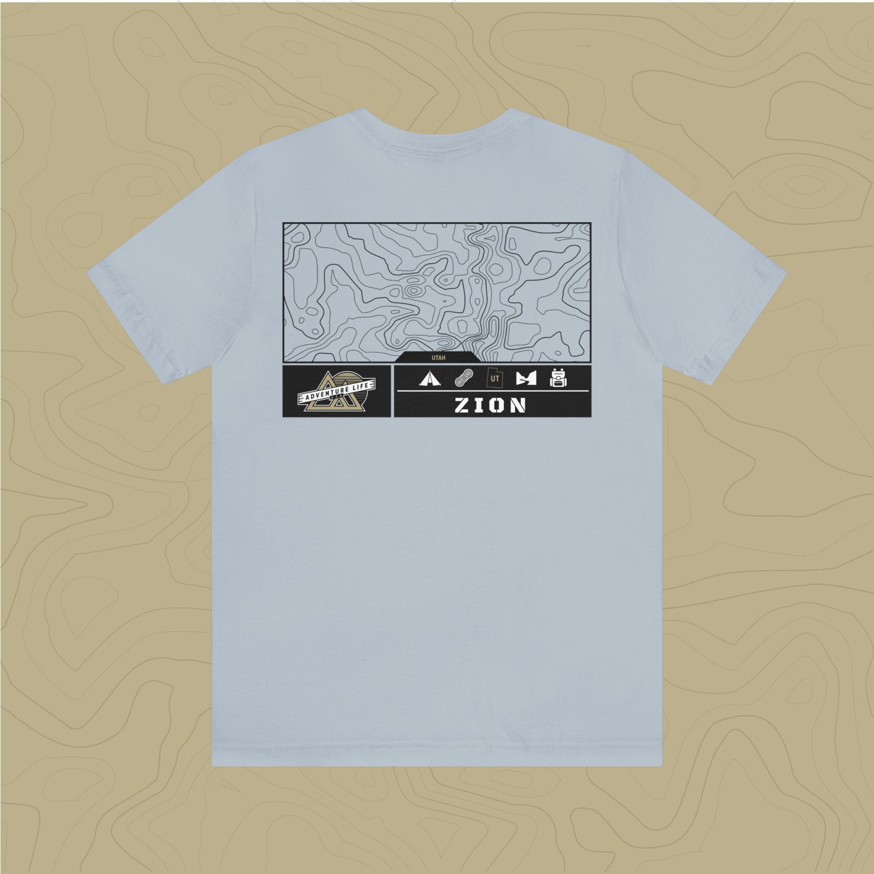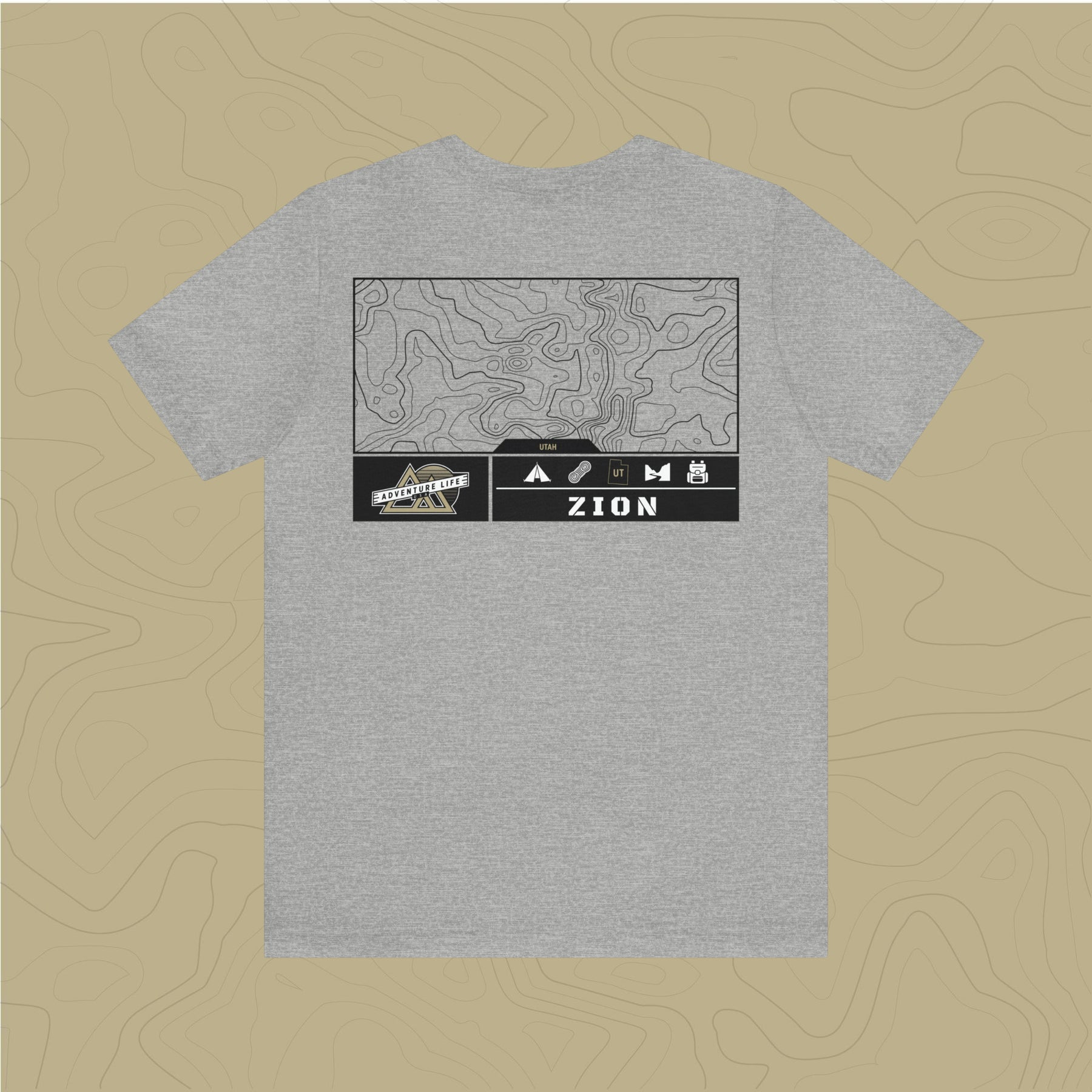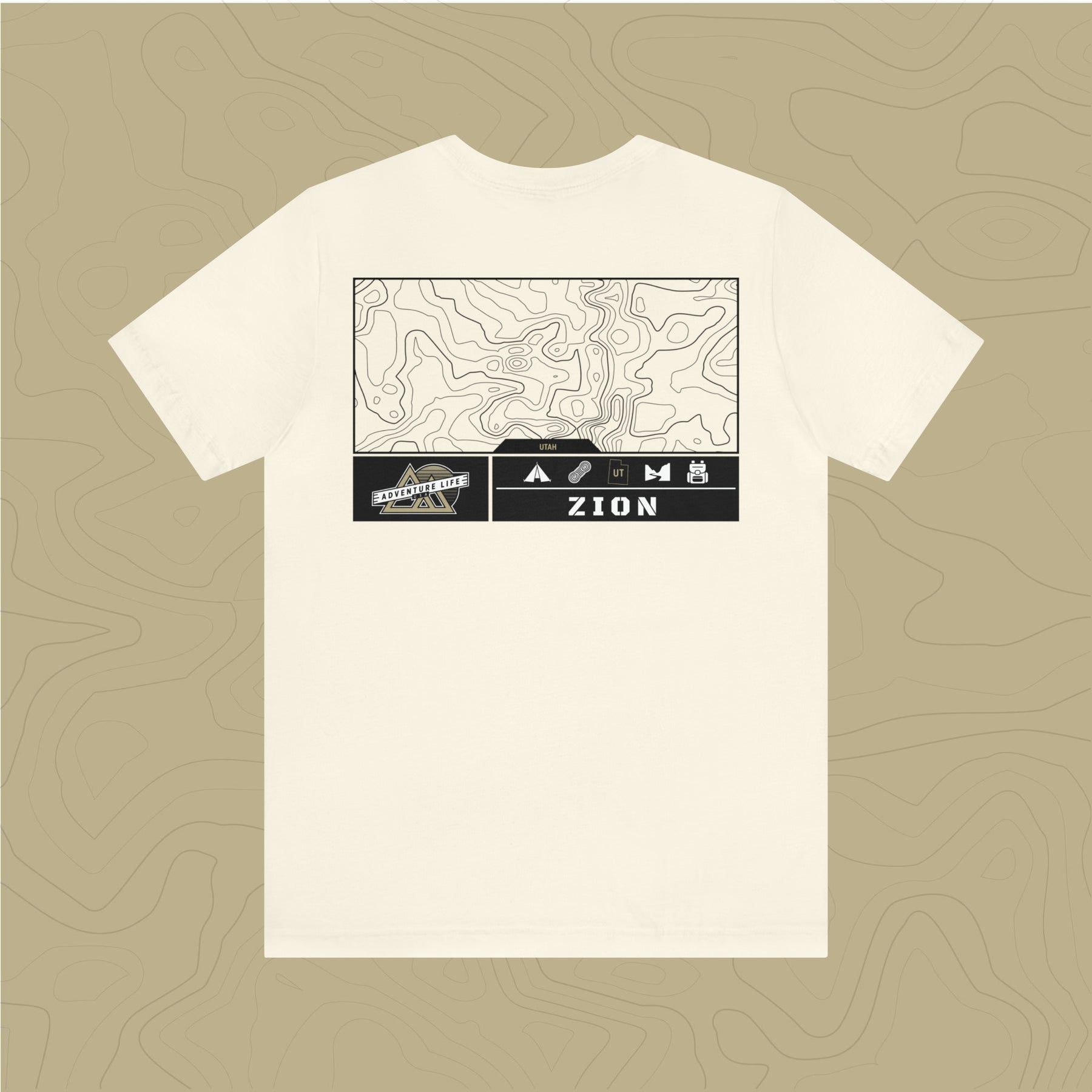 Embrace the adventure of Zion National Park with our topographic map tee, a tribute to nature's beauty.