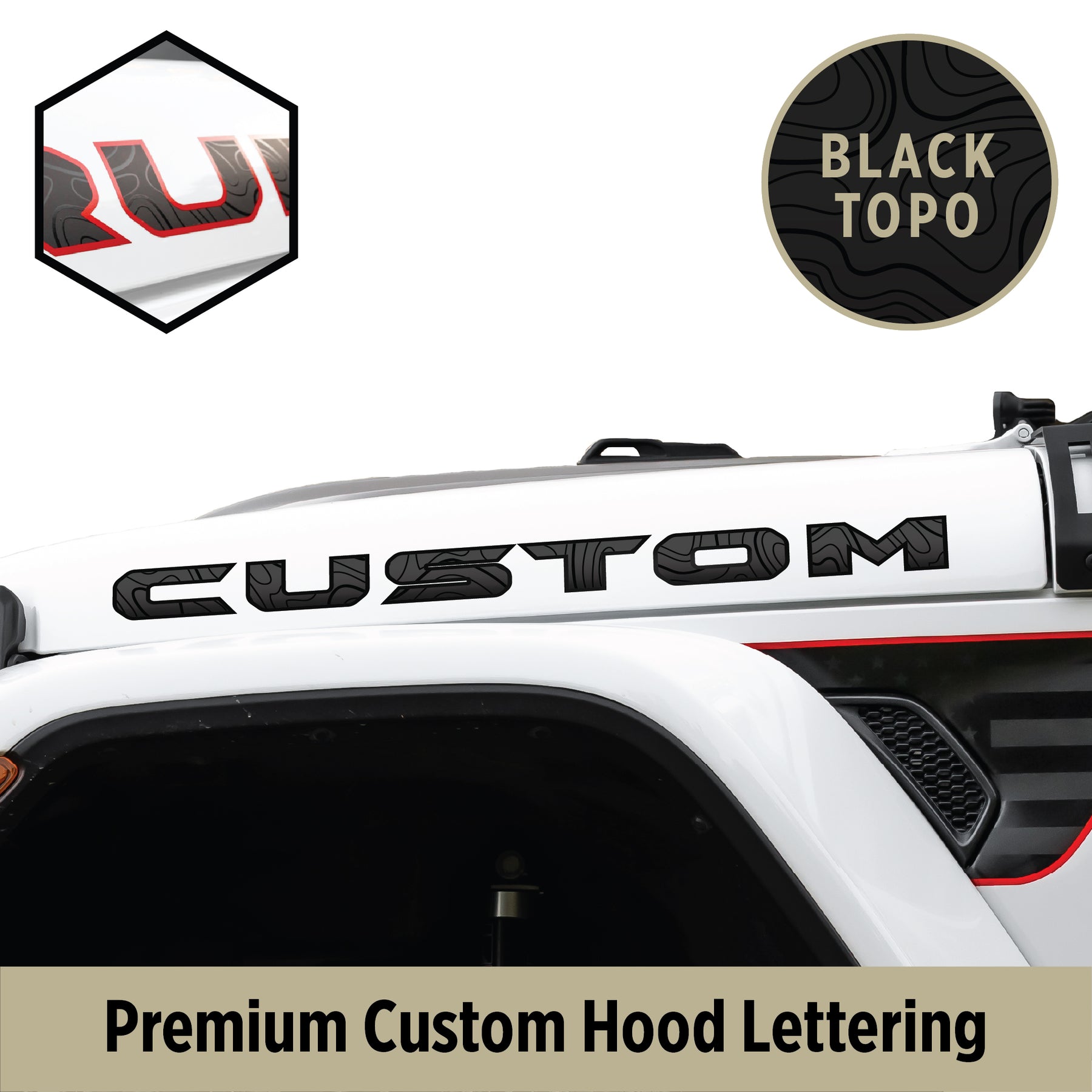 What's the difference? The premium hood lettering option has a matte black base with gloss accent colors which creates a premium look to match our hood graphics, tailgate graphics, and fender vent decals.