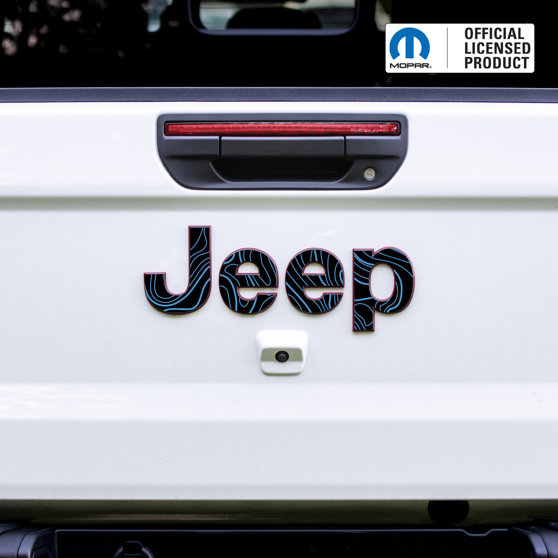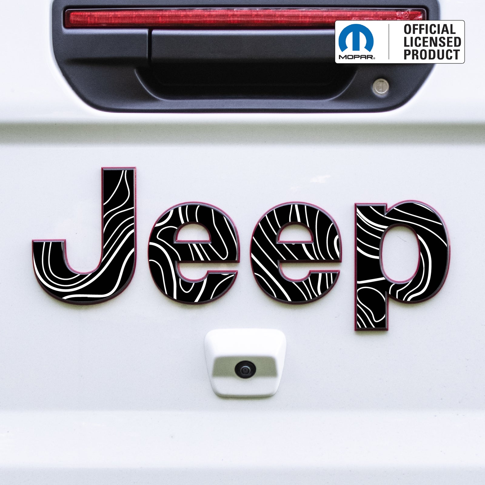 Upgrade your Jeep Gladiator with an Official Mopar licensed emblem overlay decal set in Topographical Map print. These decals are vinyl stickers designed to overlay your factory “JEEP” emblems — not 3D badges or replacements. Featuring a topo map pattern, these overlays add rugged texture and subtle style while keeping a sleek, factory-clean appearance.