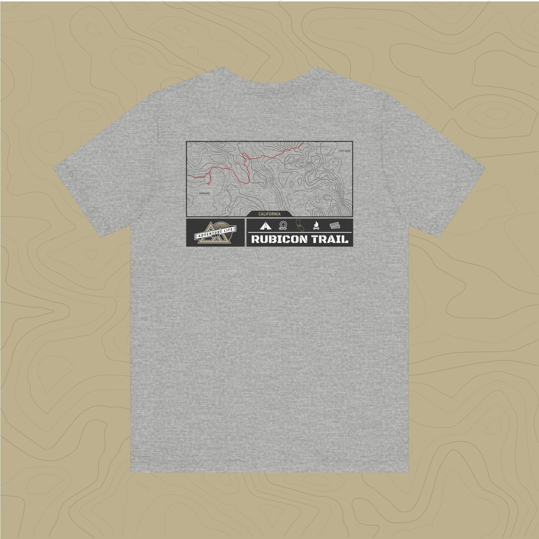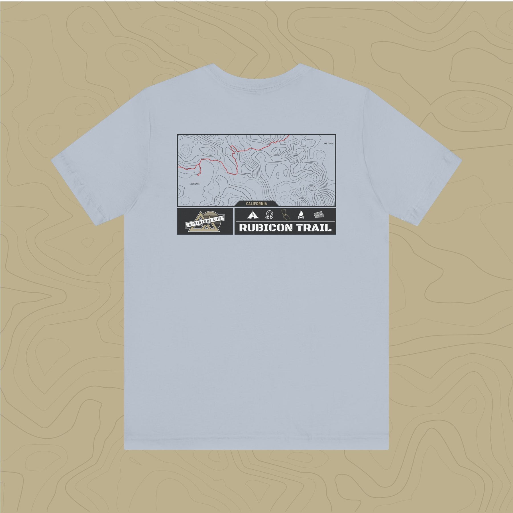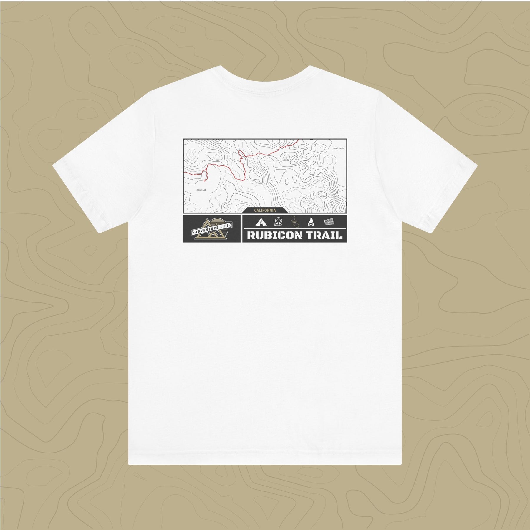 Embrace the adventure of the untamed Rubicon Trail with out topographic map tee, a tribute to nature's rugged beauty.