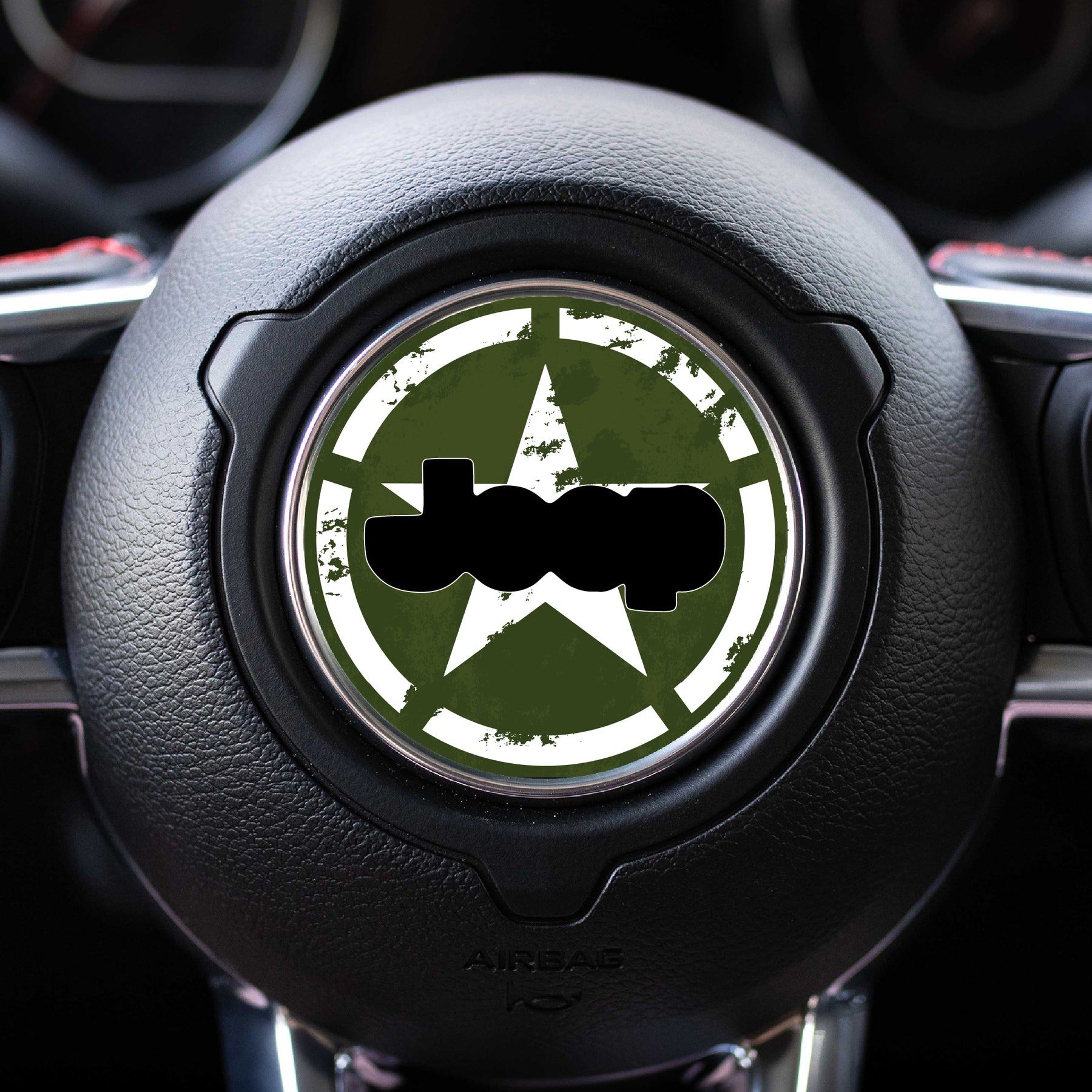 Customize your interior with this army star print decal that is precisely cut and intentionally designed to fit directly onto your factory steering wheel around the interior emblem.