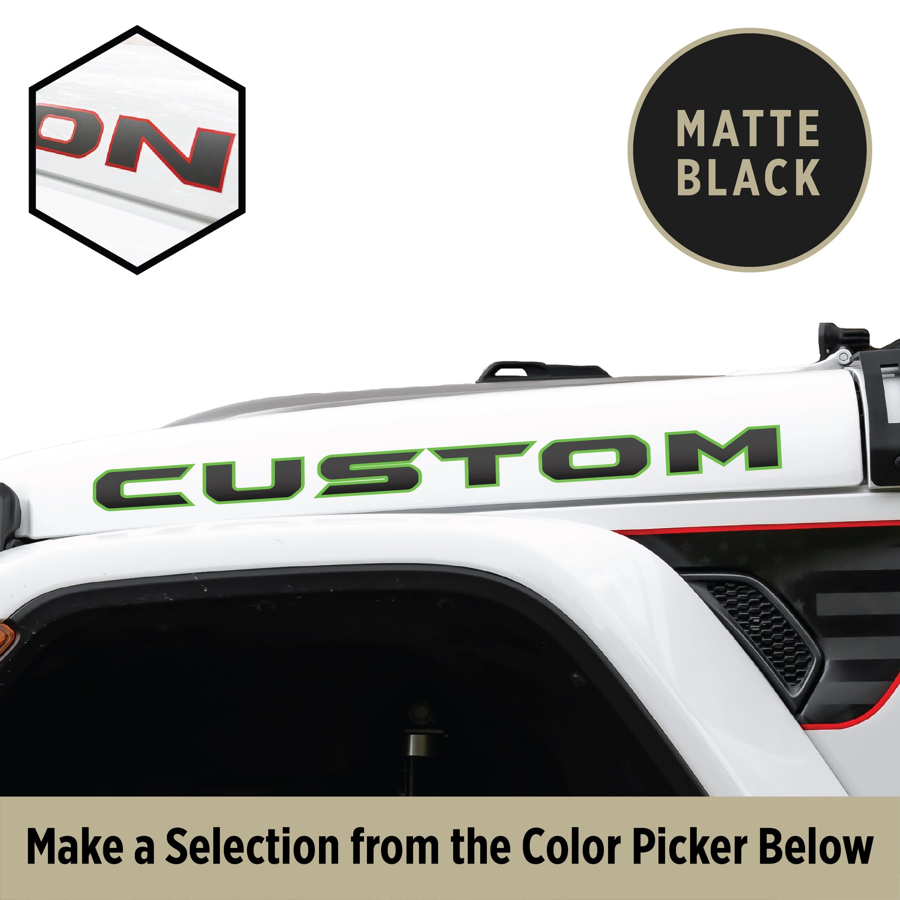 What's the difference? The premium hood lettering option has a matte black base with gloss accent colors which creates a premium look to match our hood graphics, tailgate graphics, and fender vent decals.