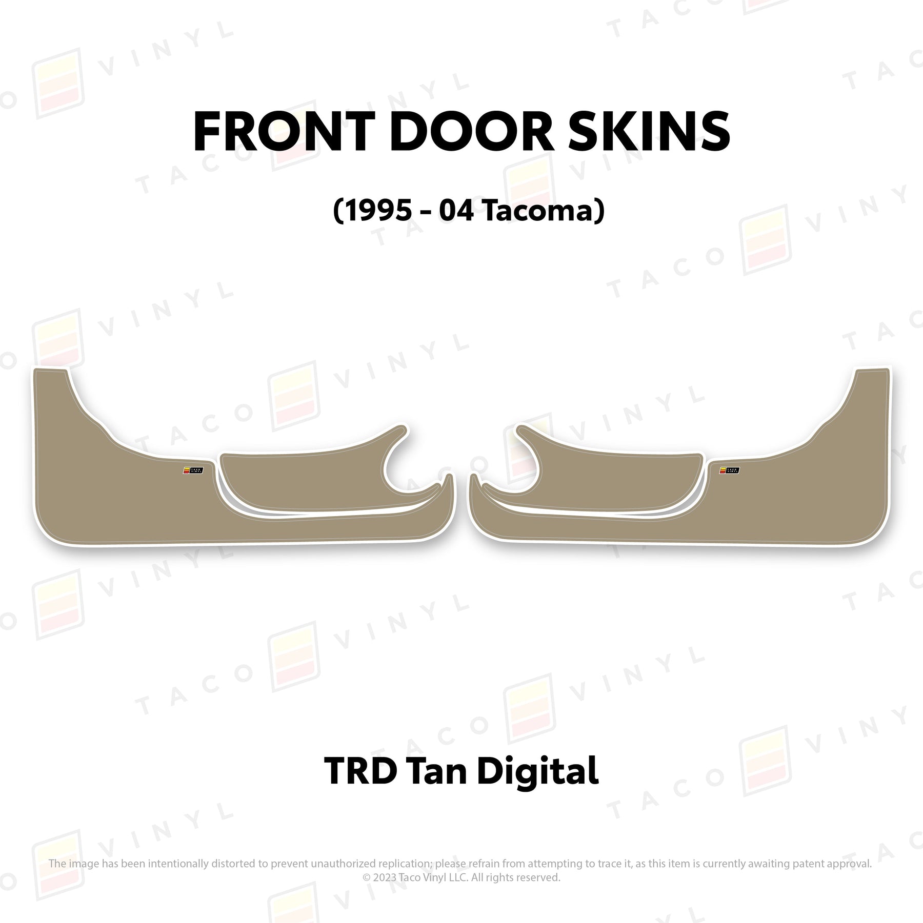 Welcome the world's first door skins for your 2nd gen Tacoma. Our door skins are made of the best and thickest material to get the job done. Initially created to shield against door wear and tear caused by boots, tools, pets, and recreational activities, we later realized that our door skins also boast aesthetic appeal. Whether you intend to maintain your truck for the long haul or have it on lease, our door skins effectively preserve the door panel's condition while imparting a stylish design if desired.