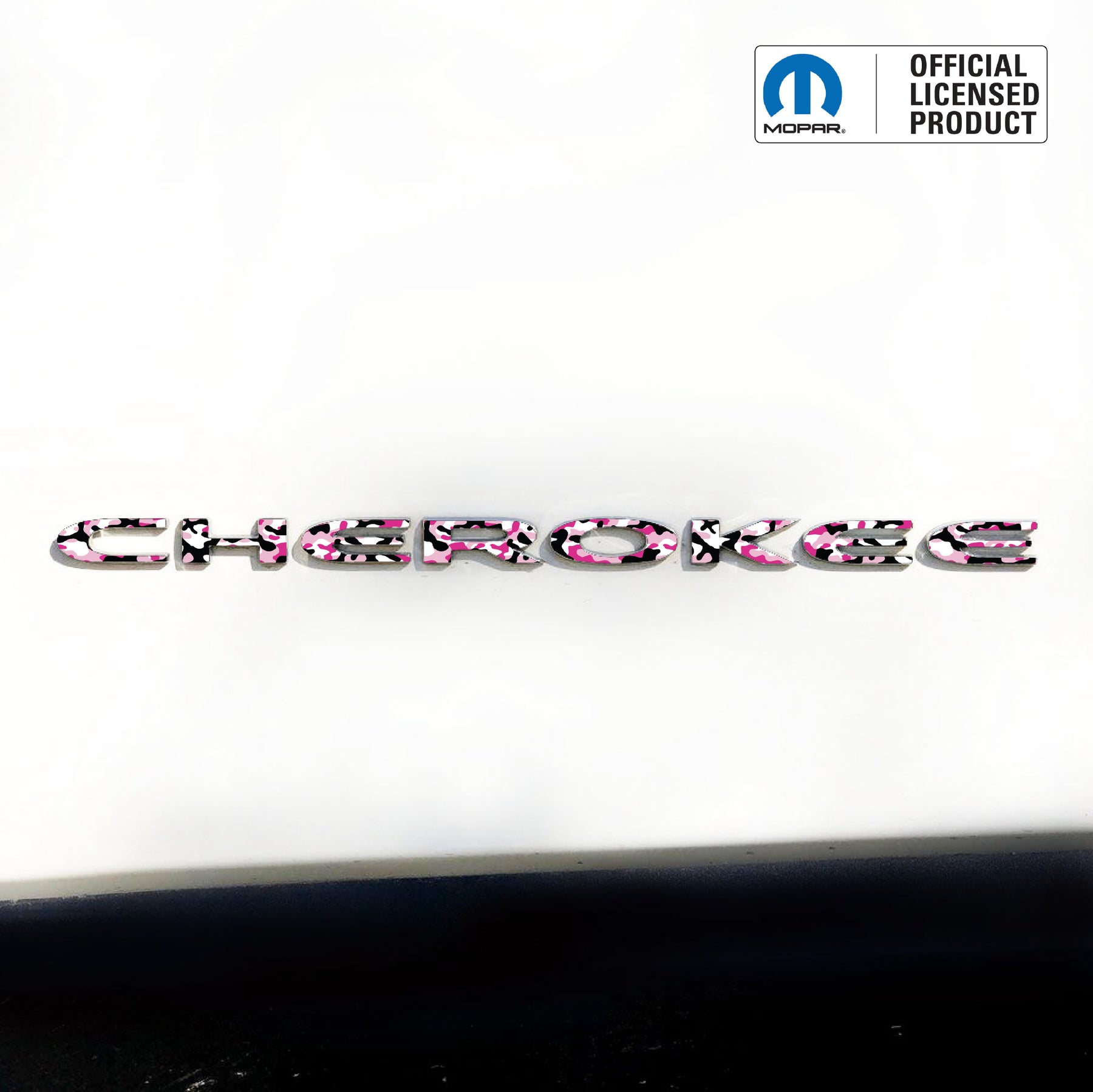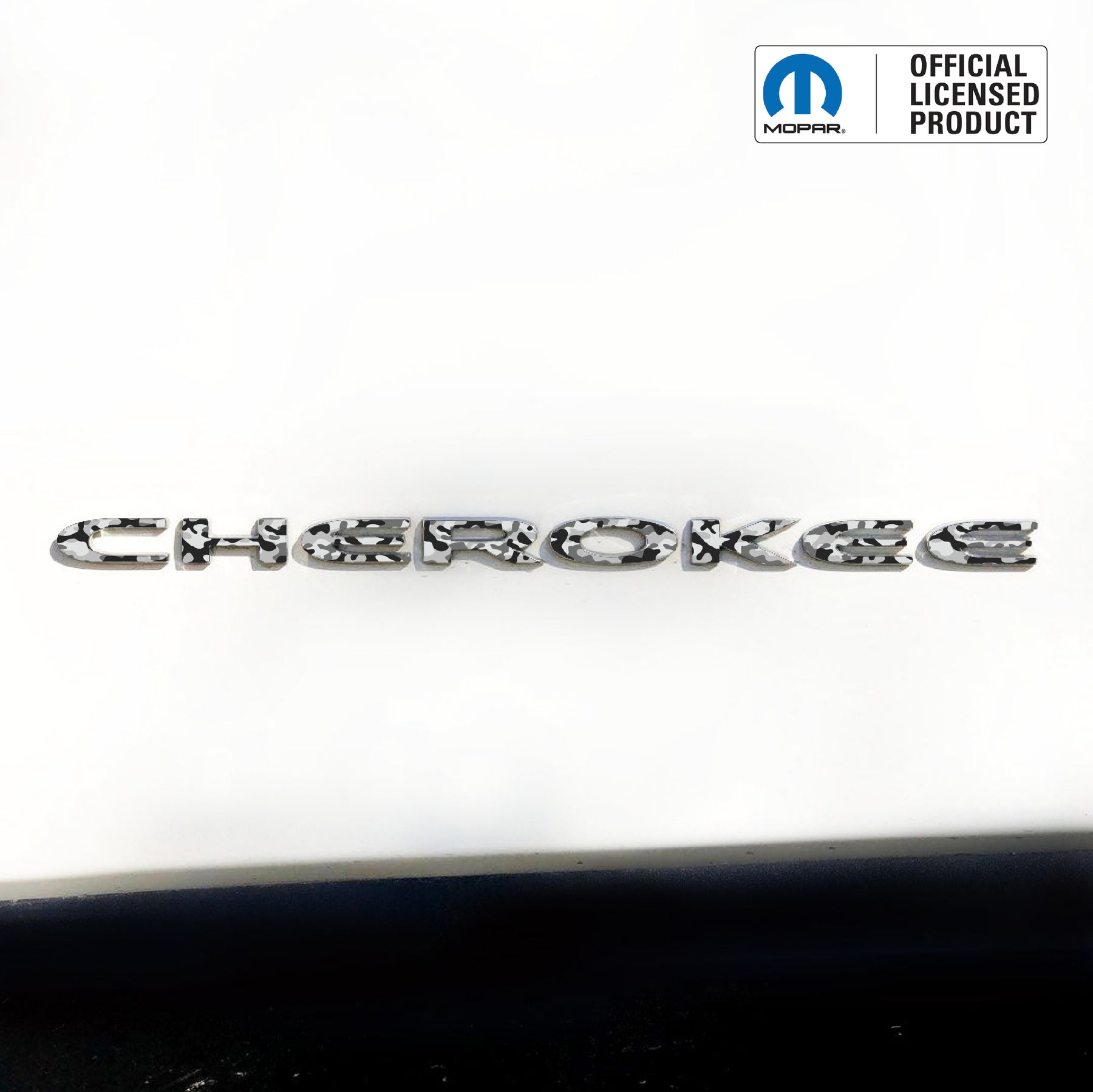 These Jeep Cherokee CHEROKEE emblem overlay decals are the perfect Mopar-approved customization for drivers who want to add rugged character to their SUV. The camo print design delivers a bold, outdoors-inspired look while blending seamlessly with your factory emblems.