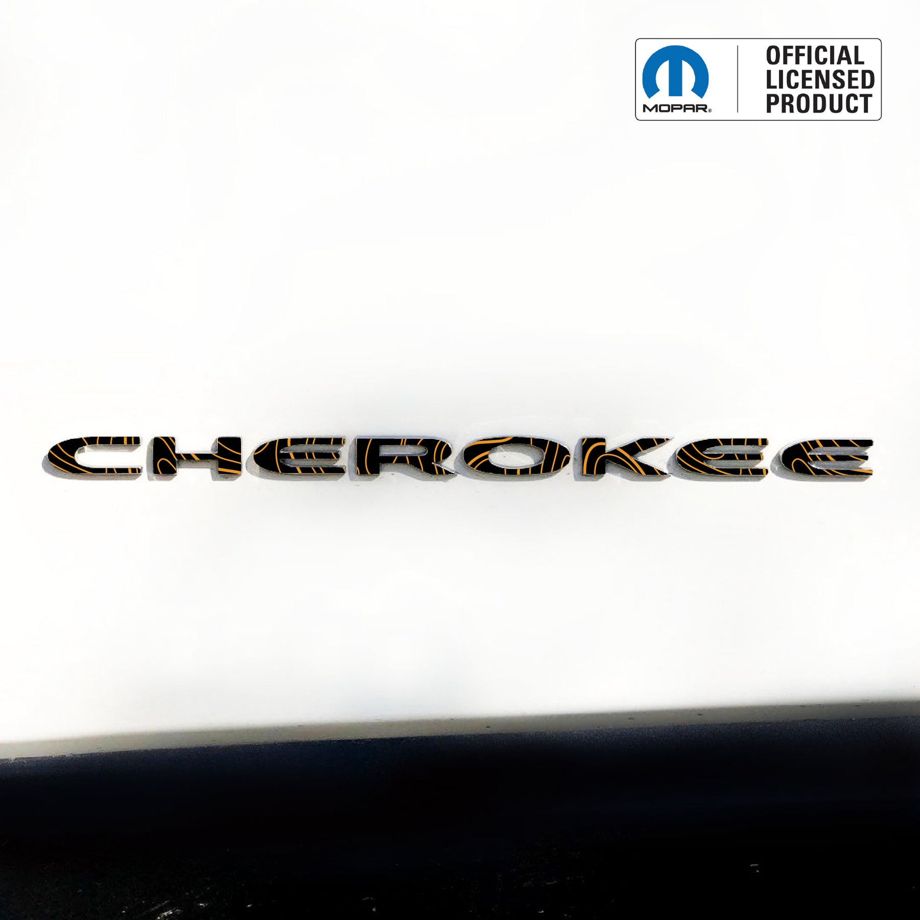 These Jeep Cherokee CHEROKEE emblem overlay decals are the perfect Mopar-approved customization for SUV owners who want to highlight their adventurous side. The topographic map print delivers a unique, rugged finish that transforms the look of your Cherokee while blending seamlessly with your factory badges.