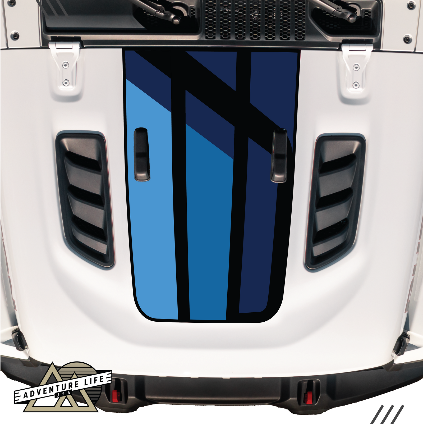 Retro Blue Stripe Hood Graphic for Wrangler JL & Gladiator | Inspired by the J6 Honcho – 4-Color Fade Edition