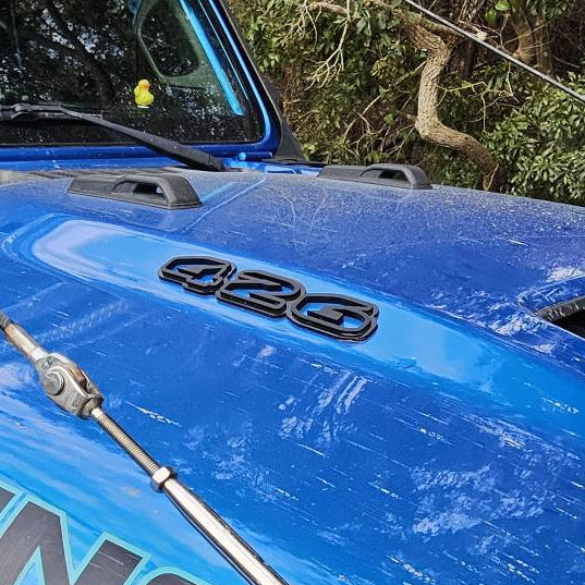 These emblems are custom made in our shop, from 1/8" cast acrylic, and are laser cut. Final letters will end up around 1/4" thick. These are the same size as the hood emblems on the 392 Hood. They are Approx. 7" wide.