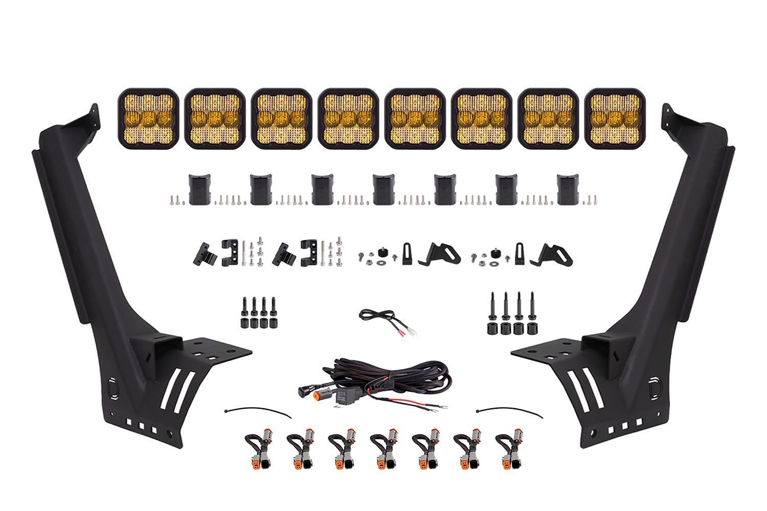 Perfect Fitment. The Windshield CrossLink Lightbar Kit compatible with 2018-2023 Jeep Wrangler JL from Diode Dynamics allows you to mount eight linked SS5 LED pods above the factory windshield. These application-specific brackets were CAD-designed to bolt into place using factory mounting points above the factory windshield. No cutting or drilling required!