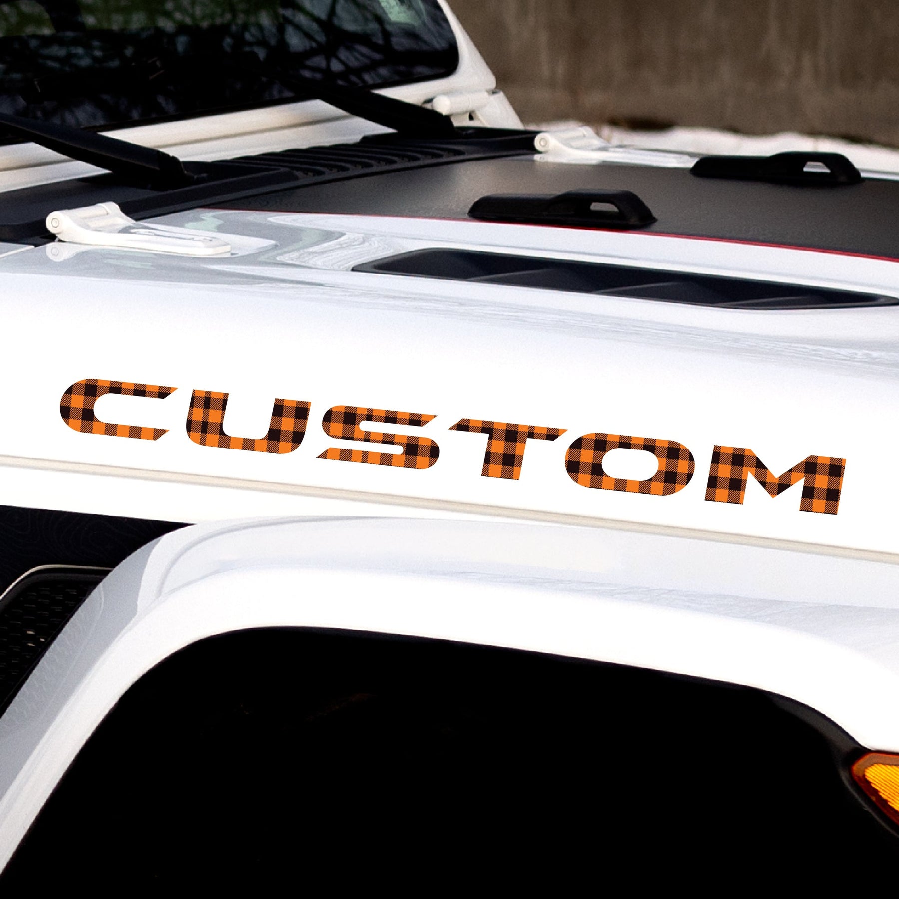 Includes: (2) Custom Text Decals, one for each side of the hood