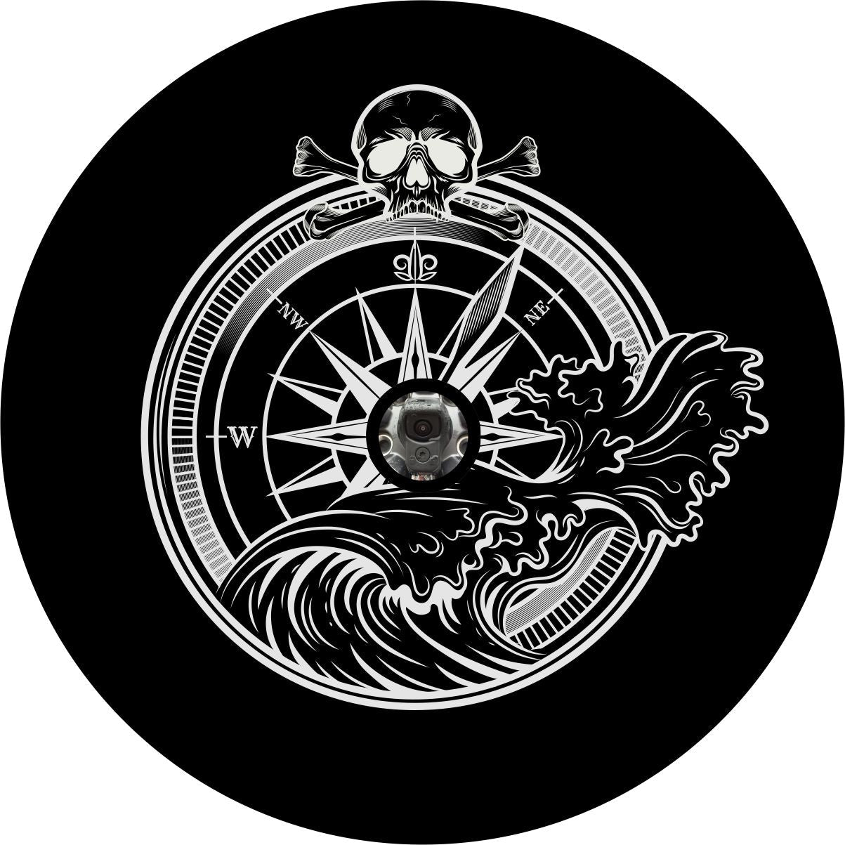 Pirate Skull & Compass Crashing Wave Spare Tire Cover - Jeep, Bronco, RV, Camper, & More