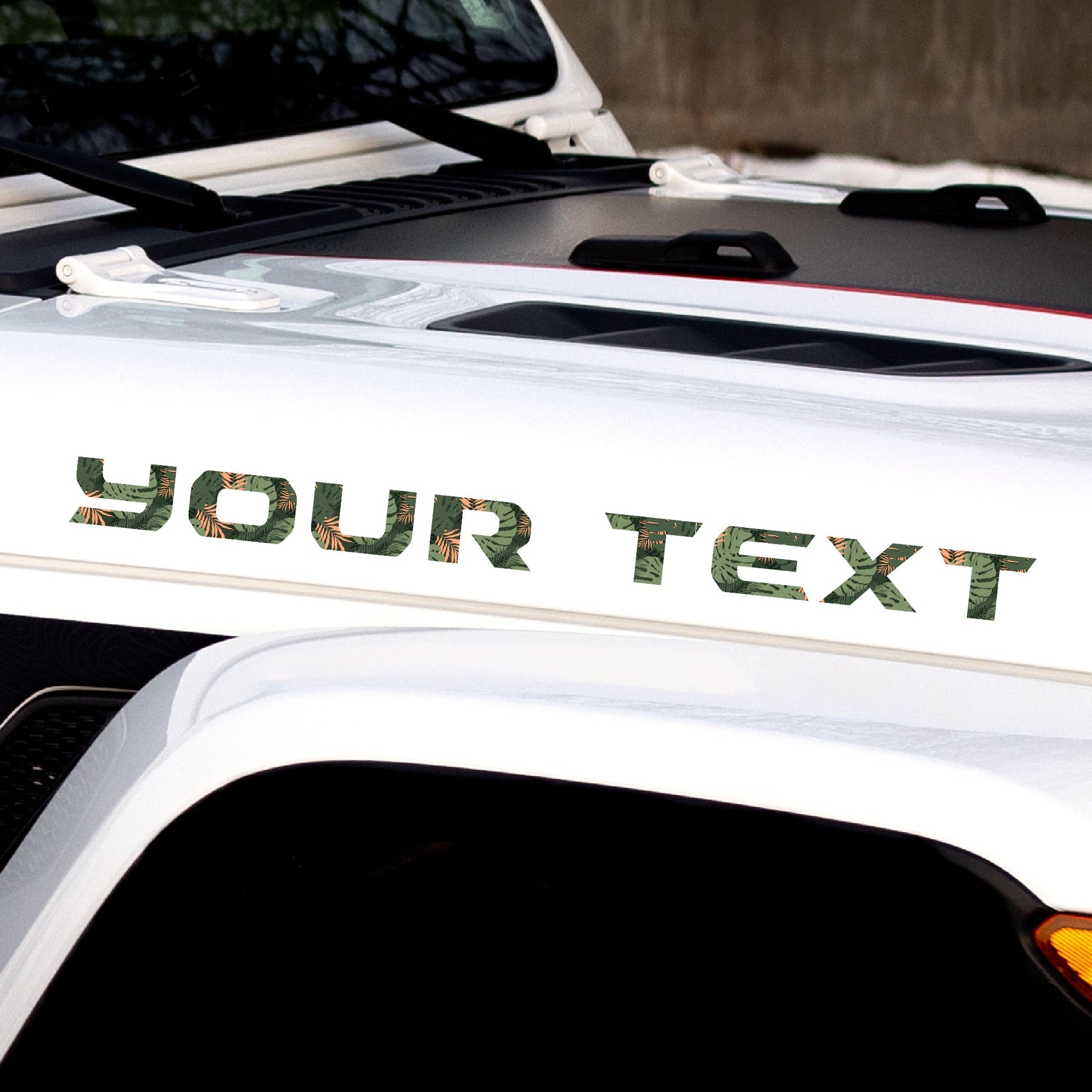 Includes: (2) Custom Text Decals, one for each side of the hood