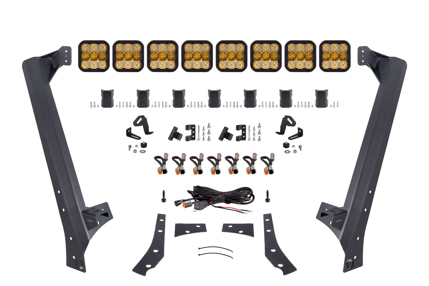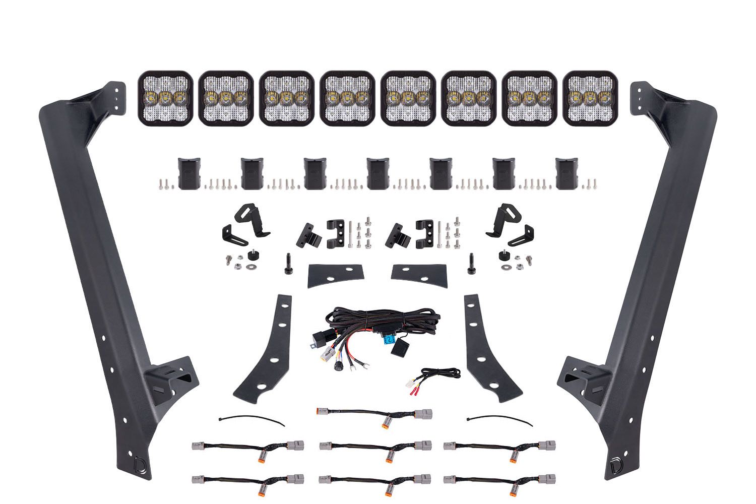 Perfect Fitment. The Windshield CrossLink Lightbar Kit compatible with 2007-2018 Jeep Wrangler JK from Diode Dynamics allows you to mount eight linked SS5 LED pods above the factory windshield. These application-specific brackets were CAD-designed to bolt into place using factory mounting points above the factory windshield. No cutting or drilling required!