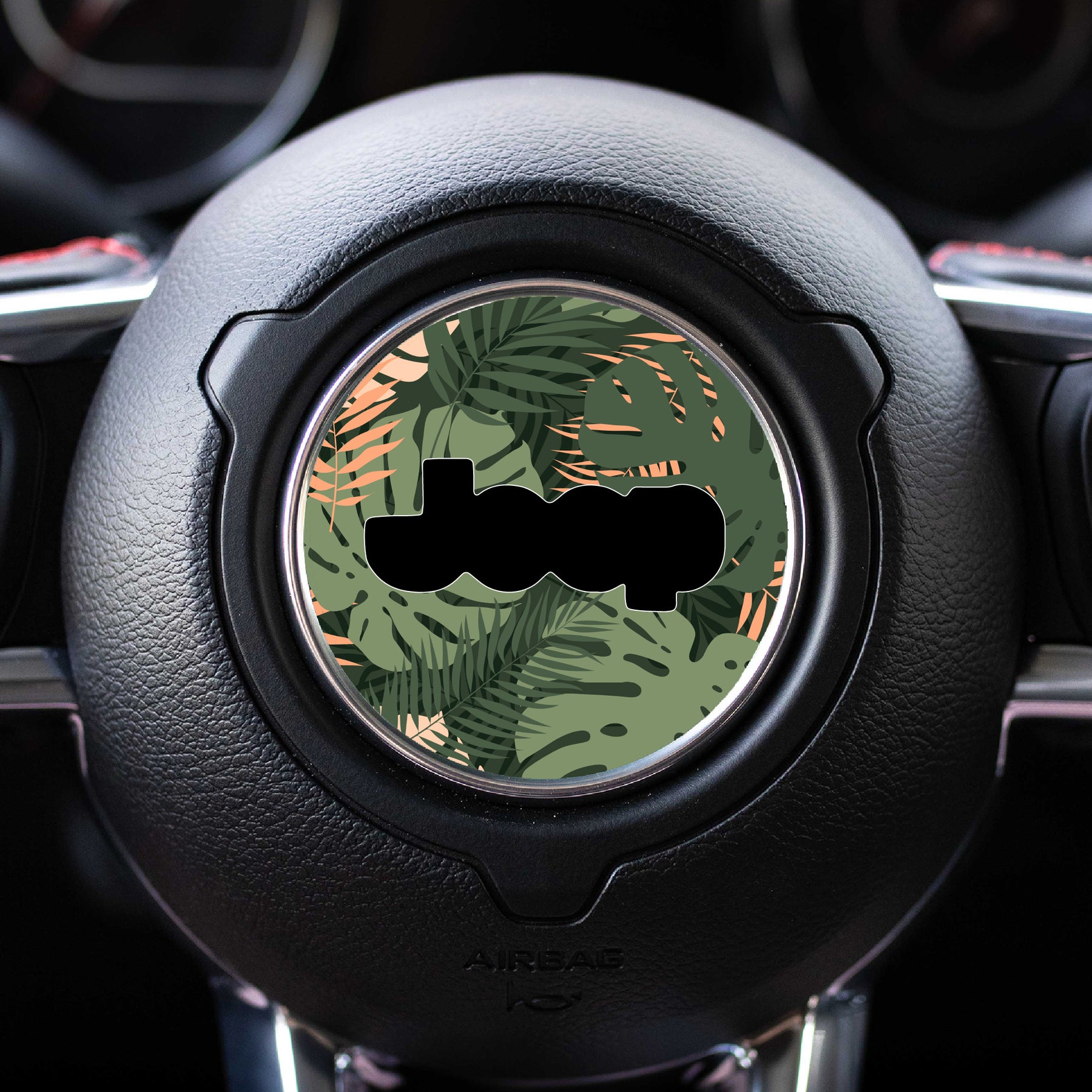 Customize your interior with this floral print decal that is precisely cut and intentionally designed to fit directly onto your factory steering wheel around the interior emblem.