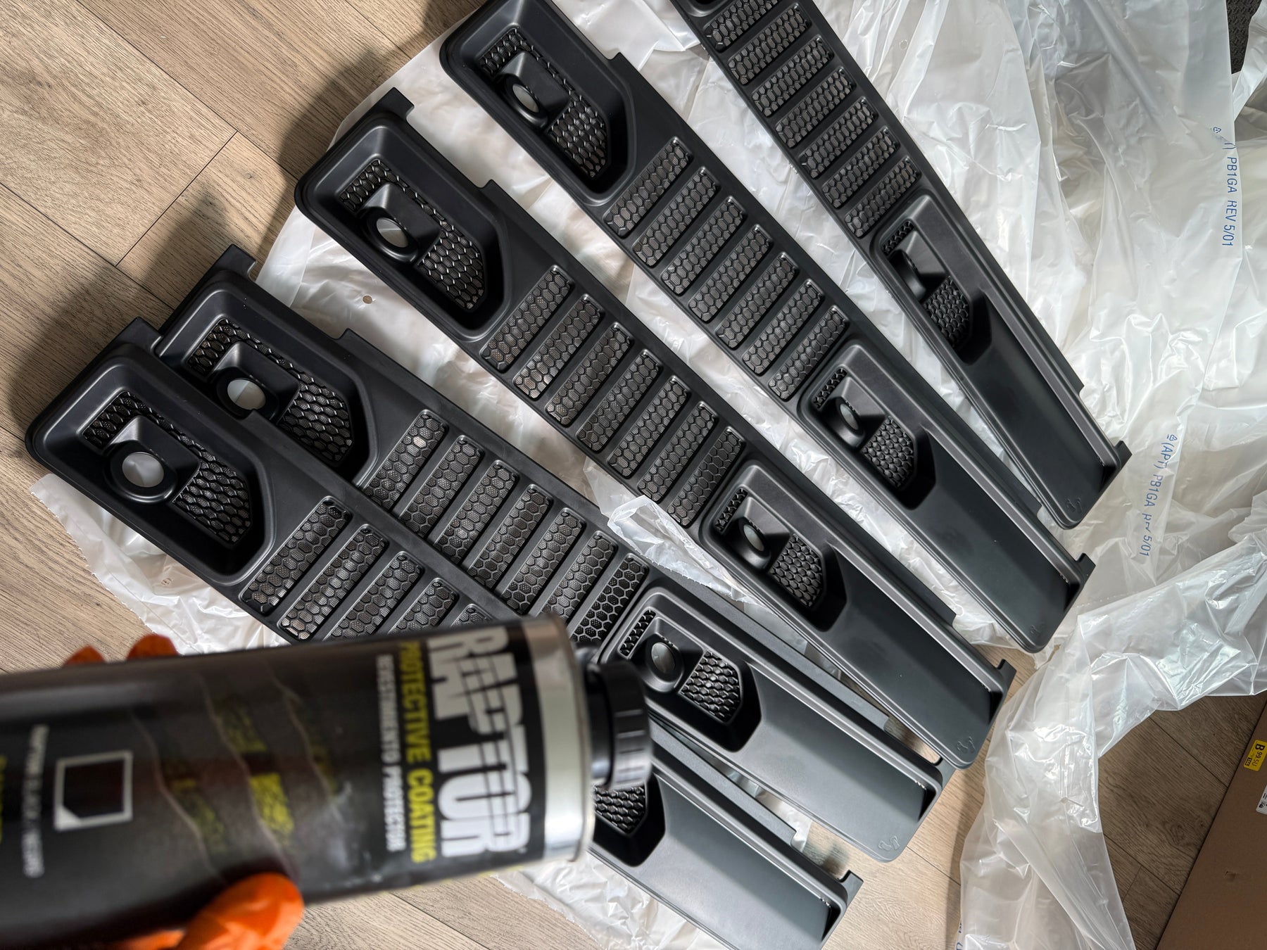 Say no to a fade plastic part on your Jeep. Our Raptor liner coating is a hydrophobic, rugged protective layer that resists UV fading, and scratches. The two textures, resembling 200 grit and 500 grit sandpaper, are distinct when touched but subtle to the eye. In case of uncertainty, always opt for a rugged option.