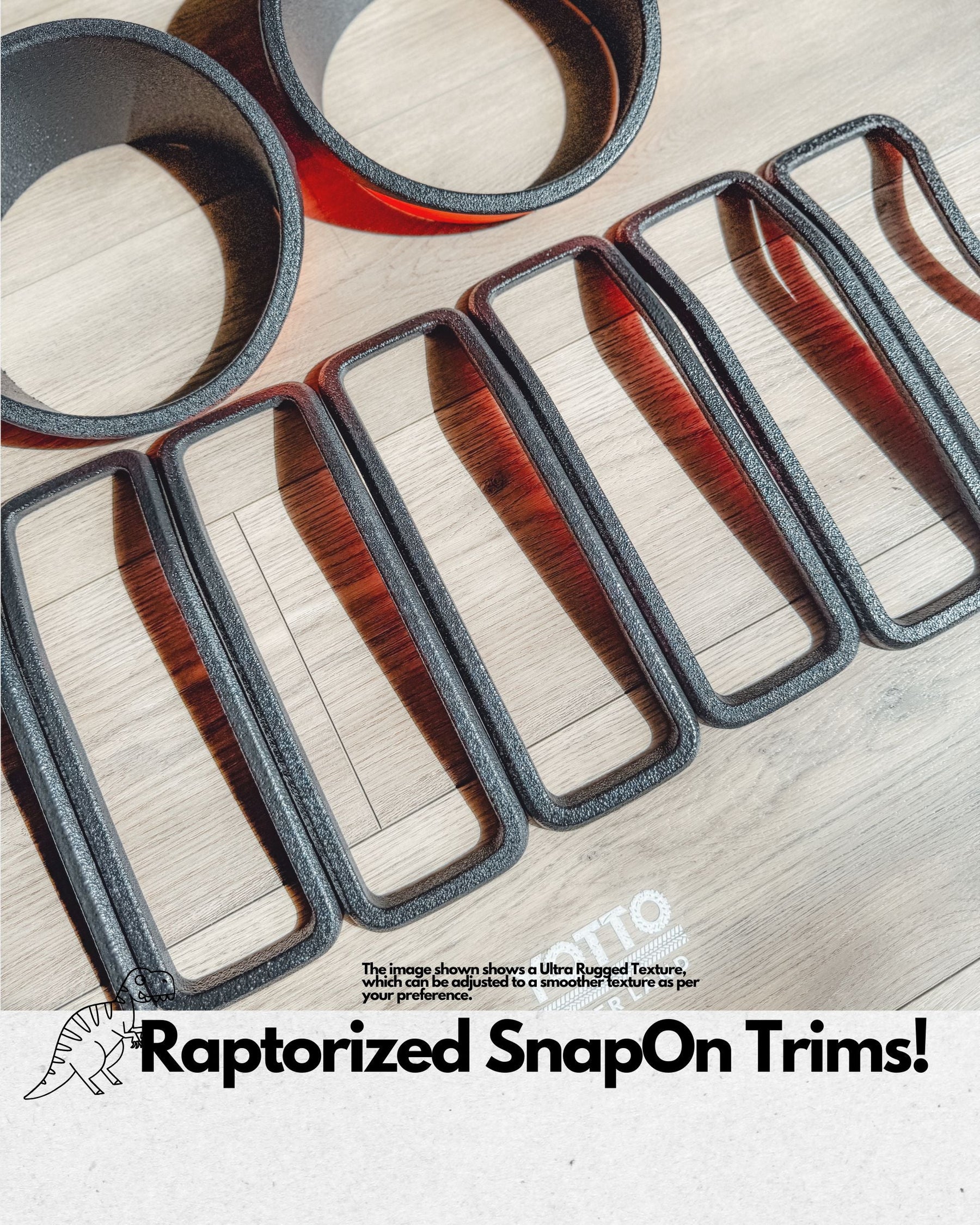 This is a full set of snap on trim covers to delete the OEM chrome trim look without having to dissemble the grille and repaint them.