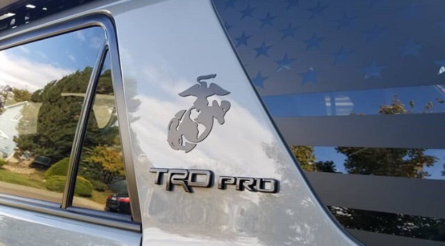 Our USMC Eagle, globe and anchor magnet comes in matte black color and is designed for use on vehicles. It is approximately 5x5" large and cut out to showcase your vehicle's color through the emblem.
